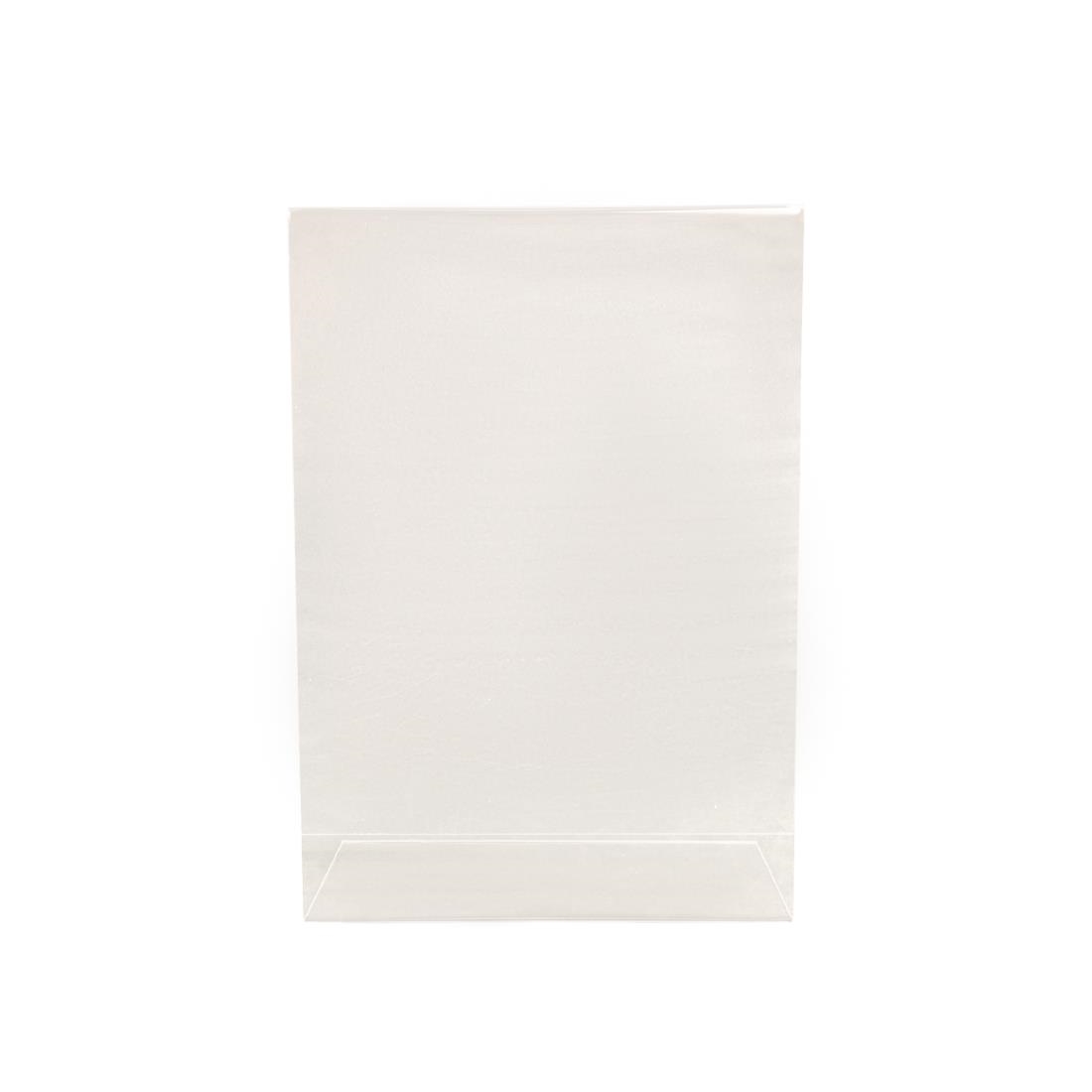 Stehender Acrylhalter in A4 oder A5. Papierblätter einfach von der Seite einschieben für eine effektive, freistehende Präsentation des Menüs oder anderen Informationen.