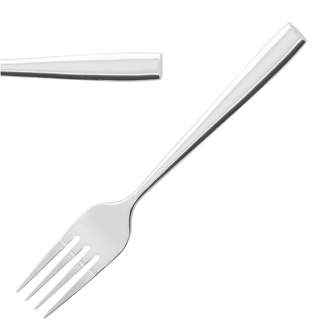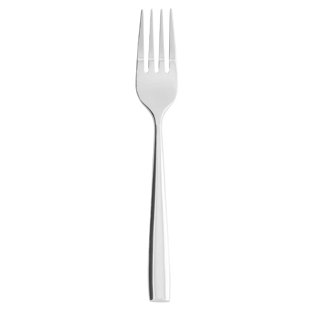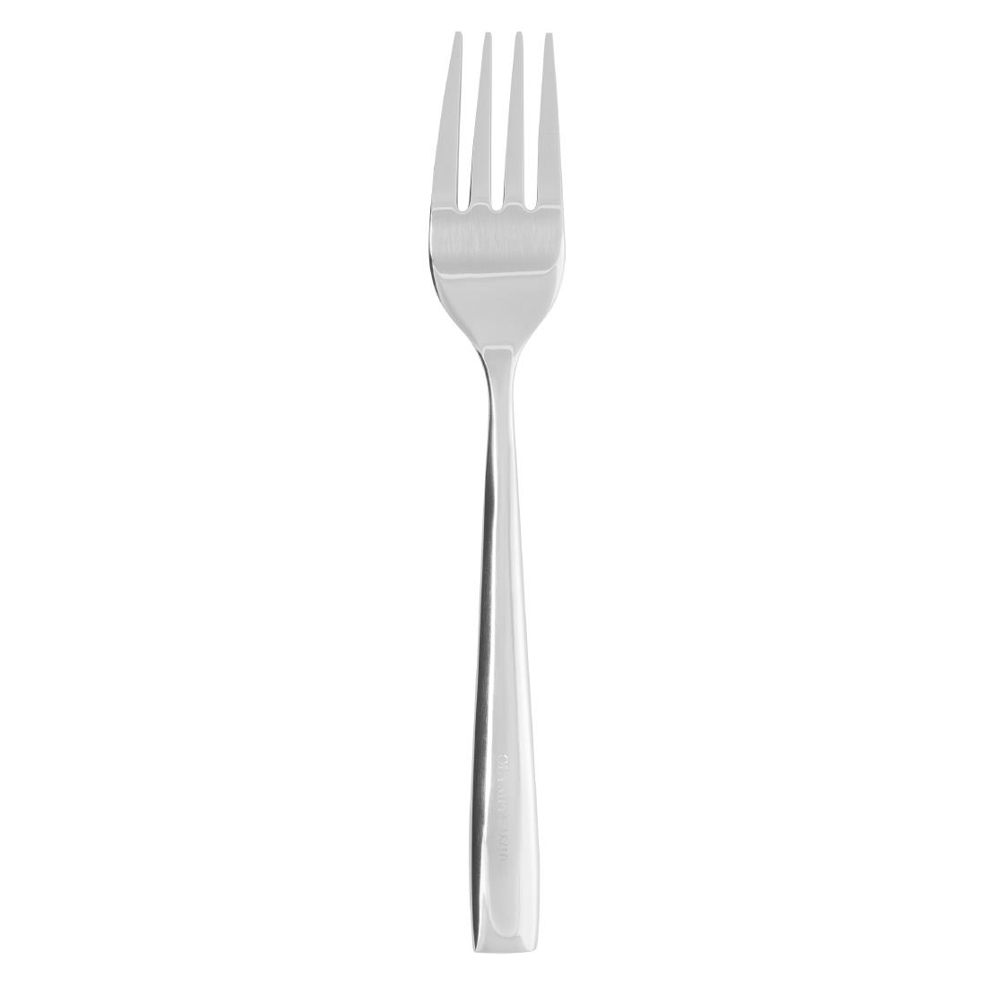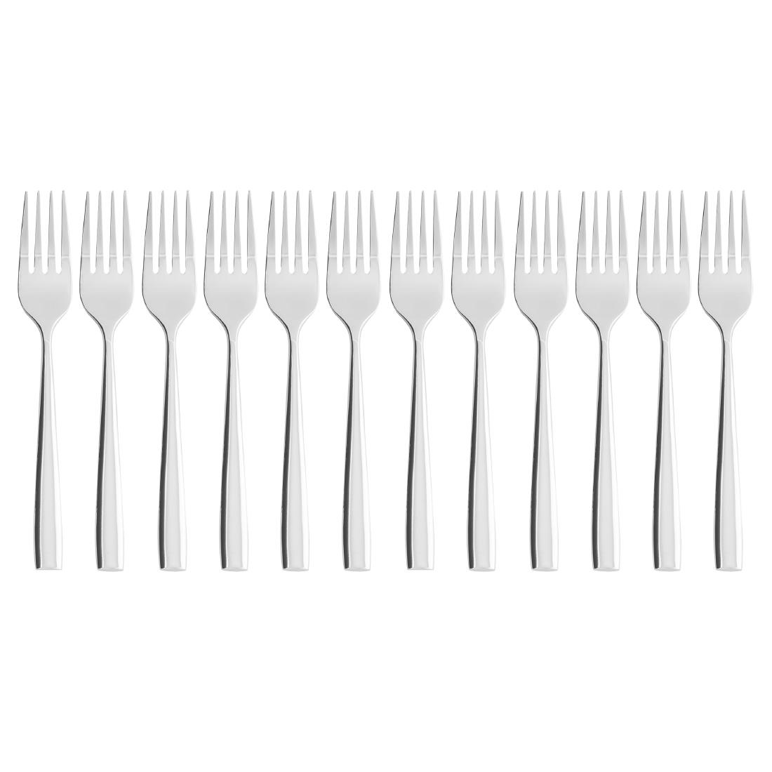 Markantes zeitgemäßes Design mit subtil gebogenen Griffen, die sich den Konturen der Hand anpassen. Langlebiger, geschmiedeter hochglanzpolierter Edelstahl 18/10. Verkauft im 12er Pack.