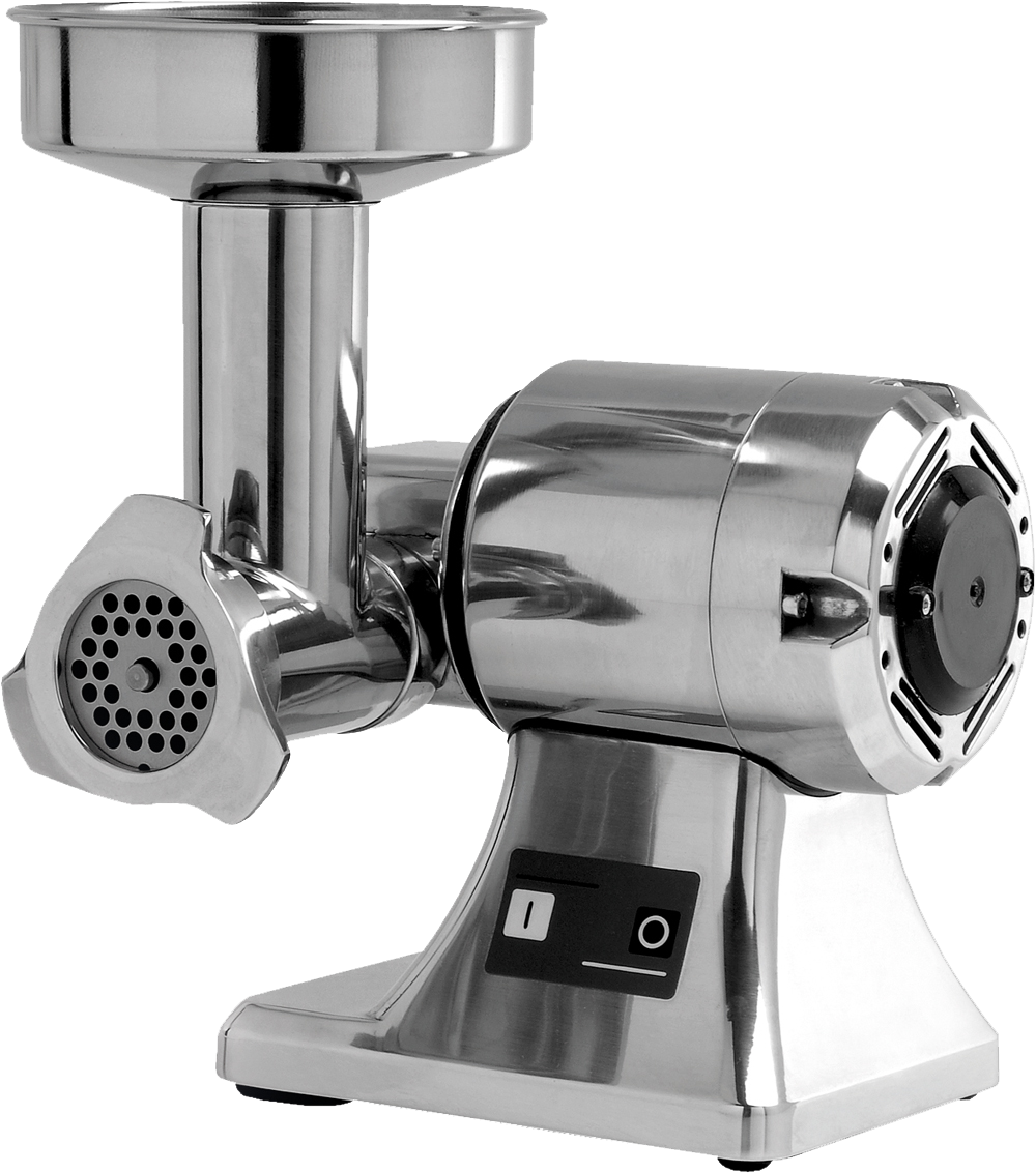 Ausführung: - Gehäuse aus eloxiertem Aluminium - belüfteter Asynchronmotor - hermetisch abgedichtetes Getriebe im Ölbad - Einfüllöffnung Ø 52 mm - Fleischwolföffnung Ø 60 mm - einzelne Bauteile zur Reinigung einfach entnehmbar - Enterprise-Schneidsystem, bestehend aus Schneidmesser & Lochscheibe - Mahlgruppe komplett aus Aluminium Ausstattung: - mit Lochscheibe (Lochdurchmesser Ø 6 mm) Leistung: - Schneckenumdrehung: 80 U/min - ca. 30 kg Fleisch / h - Motorleistung: 0,38 kW Anschluss: - Elektrischer Anschluss: 230 V / 1N / 50 Hz - mit Stecker in Schuko-Bauart nach CEE 7/7 Maße (BxTxH): 260 x 270 x 360 mm Hinweis: Der Fleischwolf ist für den semi-professionellen Einsatz und nicht für den Dauerbetrieb geeignet.