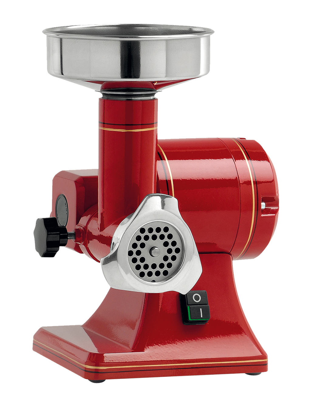 Ausführung: - Gehäuse aus lackiertem Aluminium - belüfteter Asynchronmotor - hermetisch abgedichtetes Getriebe im Ölbad - Einfüllöffnung Ø 52 mm - Fleischwolföffnung Ø 60 mm - einzelne Bauteile zur Reinigung einfach entnehmbar - Enterprise-Schneidsystem, bestehend aus Schneidmesser & Lochscheibe - Mahlgruppe aus Edelstahl Ausstattung: - mit Lochscheibe (Lochdurchmesser Ø 6 mm) Leistung: - Schneckenumdrehung: 80 U/min - ca. 30 kg Fleisch / h - Motorleistung: 0,38 kW Anschluss: - Elektrischer Anschluss: 230 V / 1N / 50 Hz - mit Stecker in Schuko-Bauart nach CEE 7/7 Maße (BxTxH): 260 x 270 x 360 mm Hinweis: Der Fleischwolf ist für den semi-professionellen Einsatz und nicht für den Dauerbetrieb geeignet.