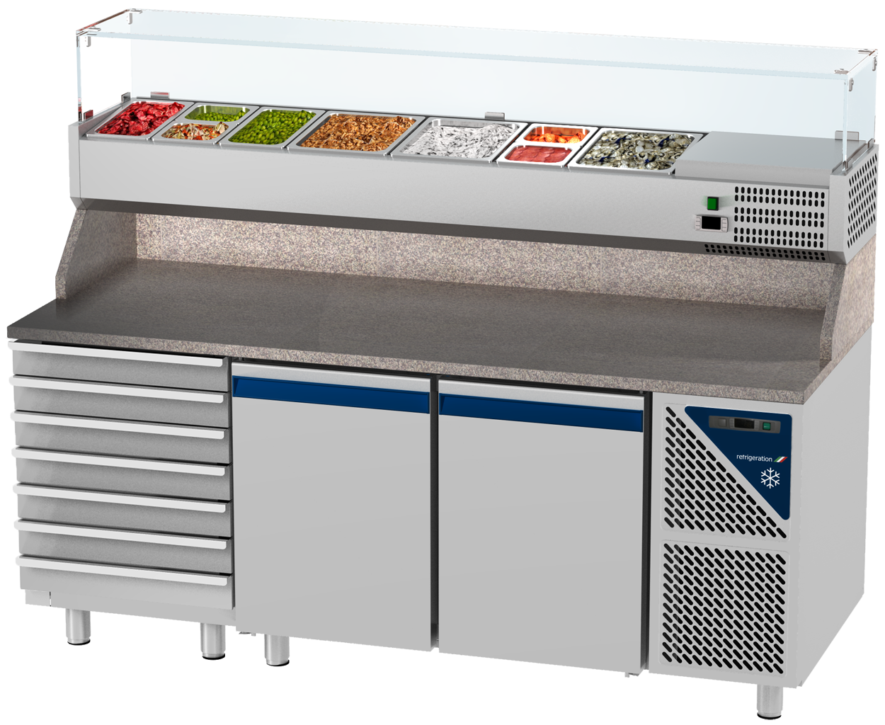 - Pizzakühltisch mit Kühlaufsatzvitrine für GN1/4