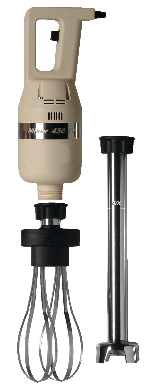 Ausführung: - Stabmixer mit 400 mm Mixstab + Schneebesen - belüftetes Motorgehäuse aus Kunststoff - Motor mit Thermoschutz - digital regelbare Geschwindigkeit über SRS-Bedienpult mit LCD-Anzeige - Mixstab aus Edelstahl - Mixstab abnehm- & wechselbar - mit Messerschutz zur leichten und sicheren Reinigung - ergonomischer Griff für optimalen Griffkomfort Leistung: - variable Geschwindigkeitsstufe: 2.000 - 17.000 U/min - Kapazität: für ca. 120 - 230 Liter Anschluss: - Anschlusswert: 0,45 kW - Elektrischer Anschluss: 230 V / 1N / 50 Hz - mit Stecker in Schuko-Bauart nach CEE 7/7 Maße (Ø x L): 130 x 800 mm