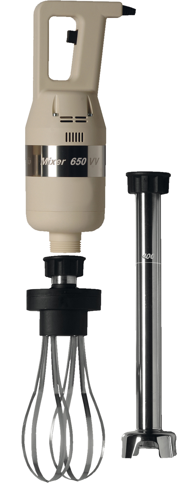Ausführung: - Stabmixer mit 400 mm Mixstab + Schneebesen - belüftetes Motorgehäuse aus Kunststoff - Motor mit Thermoschutz - digital regelbare Geschwindigkeit über SRS-Bedienpult mit LCD-Anzeige - Mixstab aus Edelstahl - Mixstab abnehm- & wechselbar - mit Messerschutz zur leichten und sicheren Reinigung - ergonomischer Griff für optimalen Griffkomfort Leistung: - variable Geschwindigkeitsstufe: 2.000 - 13.000 U/min - Kapazität: für ca. 120 - 230 Liter Anschluss: - Anschlusswert: 0,65 kW - Elektrischer Anschluss: 230 V / 1N / 50 Hz - mit Stecker in Schuko-Bauart nach CEE 7/7 Maße (Ø x L): 130 x 820 mm