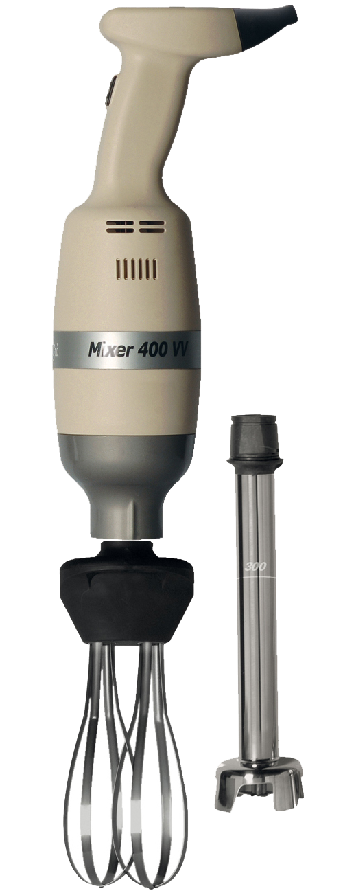 Ausführung: - Stabmixer mit 300 mm Mixstab + Schneebesen - belüftetes Motorgehäuse aus Kunststoff - Motor mit Thermoschutz - SRS-Bedienpult mit LED-Anzeige - Mixstab aus Edelstahl - Mixstab abnehm- & wechselbar - mit Messerschutz zur leichten und sicheren Reinigung - ergonomischer Griff für optimalen Griffkomfort Leistung: - variable Geschwindigkeitsstufe: 2.000 - 15.000 U/min - Kapazität: für ca. 80 - 100 Liter Anschluss: - Anschlusswert: 0,40 kW - Elektrischer Anschluss: 230 V / 1N / 50 Hz - mit Stecker in Schuko-Bauart nach CEE 7/7 Maße (Ø x L): 100 x 650 mm