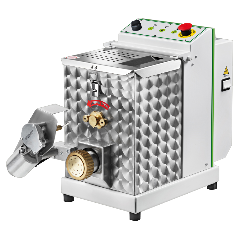 Ausführung: - Gerätekorpus aus Stahl lackiert - Teigbehälter u. Korpus aus Edelstahl - Mikroschutzschalter im Deckel - dauergeschmierte Kugellager für einen besonders wartungsarmen Betrieb - besonders hygienisch durch einfache Reinigung - für Ø 57 mm Nudelformscheiben - Auslieferung erfolgt ohne Nudelformscheiben, diese sind unter Zubehör separat zu bestellen Ausstattung: - Teigbehälter mit 4,0 kg Teigkapazität - inklusive elektrischer Abschneidevorrichtung Leistung: - Produktion: ca. 13 kg / h Anschluss: - Anschlusswert: 0,75 kW - Elektrischer Anschluss: 400 V / 3N / 50 Hz Maße (BxTxH): 350 x 760 x 450 mm