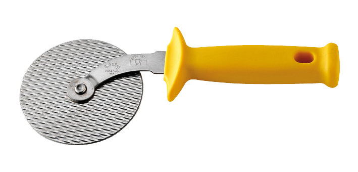 Pizzaroller (Ø) 11 cm aus Edelstahl - mit gelben Kunststoffgriff - kg 0,2