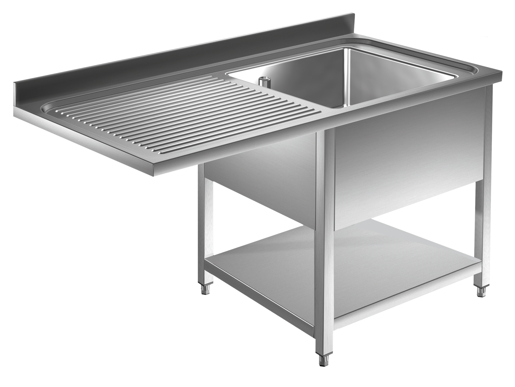 Ausführung: - Spülzentrum komplett aus Edelstahl - hohe Belastbarkeit durch verschraubte Konstruktion - keine scharfen Kanten - mit höhenverstellbaren Schraubfüßen Spülabdeckung: - 1 Spülbecken rechts (BxTxH): 500 x 400 x 250 mm - Abtropffläche und Spülmaschinenrücksprung links für Spülmaschinen mit einer Breite 600 mm - Spülabdeckung mit 100 mm Aufkantung - Materialstärke: 0,8 mm - Inkl. Standrohrventil Untergestell: - Untergestell mit verstärktem Grundboden - 270 mm Front- & Seitenverkleidung unterhalb der Spülabdeckung - Lichtes Maß zwischen Grundboden und Front- bzw. Seitenverkleidung: 358 mm - Bodenfreiheit: ca. 140 mm - Grundgestell aus Vierkantprofil 40 x 40 mm, Profilstärke: 1,0 mm Material: - Chromstahl, nickelfrei, AISI 430, WNr. 1.4016, entspricht sämtlichen europäischen und amerikanischen Nahrungsmittel-Normen! Maße (BxTxH): 1400 x 600 x 850 +100 mm Hinweis: - Das Spülzentrum wird demontiert, zur Selbstmontage, geliefert.