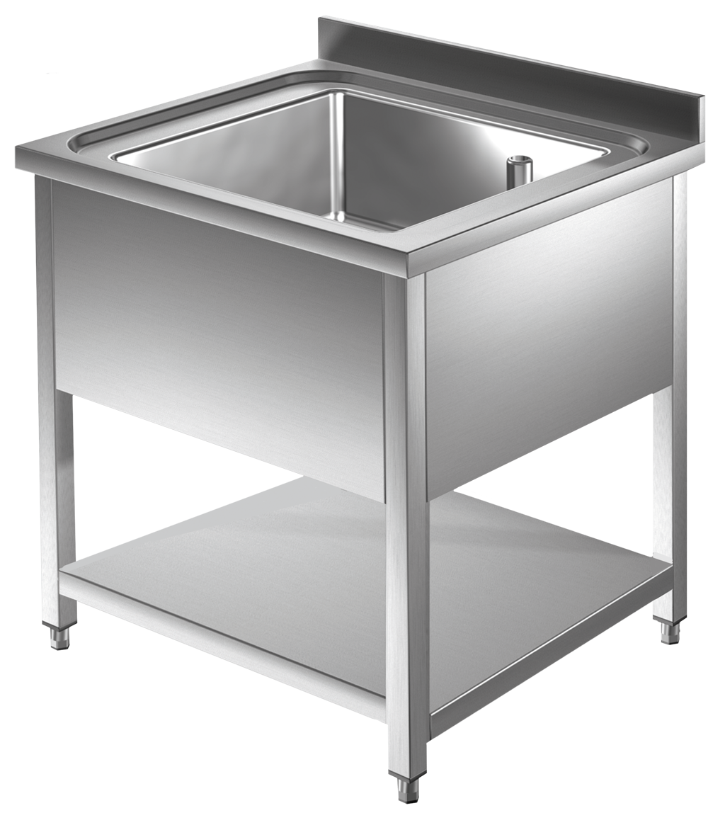 Ausführung: - Spültisch komplett aus Edelstahl - hohe Belastbarkeit durch verschraubte Konstruktion - keine scharfen Kanten - mit höhenverstellbaren Schraubfüßen Spülabdeckung: - 1 Spülbecken (BxTxH): 500 x 500 x 300 mm - Spülabdeckung mit 100 mm Aufkantung - Materialstärke: 0,8 mm - Inkl. Standrohrventil Untergestell: - Untergestell mit verstärktem Grundboden - 270 mm Front- & Seitenverkleidung unterhalb der Spülabdeckung - Lichtes Maß zwischen Grundboden und Front- bzw. Seitenverkleidung: 358 mm - Bodenfreiheit: ca. 140 mm - Grundgestell aus Vierkantprofil 40 x 40 mm, Profilstärke: 1,0 mm Material: - Chromstahl, nickelfrei, AISI 430, WNr. 1.4016, entspricht sämtlichen europäischen und amerikanischen Nahrungsmittel-Normen! Maße (BxTxH): 700 x 700 x 850 + 100 mm Hinweis: - Der Spültisch wird demontiert, zur Selbstmontage, geliefert.