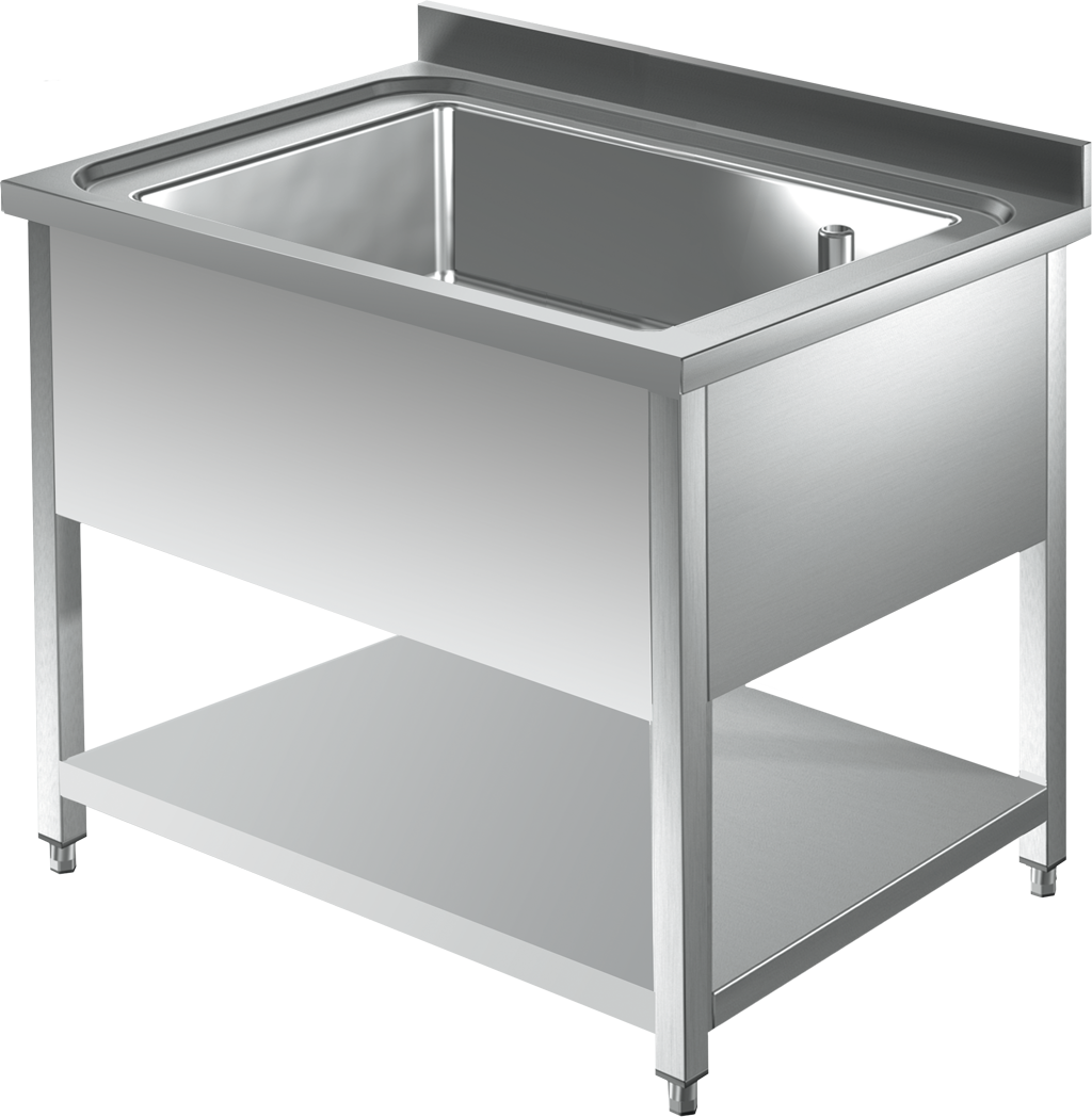 Ausführung: - Spültisch komplett aus Edelstahl - hohe Belastbarkeit durch verschraubte Konstruktion - keine scharfen Kanten - mit höhenverstellbaren Schraubfüßen Spülabdeckung: - 1 Spülbecken - Maße (BxTxH): 1060 x 500 x 350 mm - Spülabdeckung mit 100 mm Aufkantung - Materialstärke: 0,8 mm - Inkl. Standrohrventil Untergestell: - Untergestell mit verstärktem Grundboden - 270 mm Front- & Seitenverkleidung unterhalb der Spülabdeckung - Lichtes Maß zwischen Grundboden und Front- bzw. Seitenverkleidung: 358 mm - Bodenfreiheit: ca. 140 mm - Grundgestell aus Vierkantprofil 40 x 40 mm, Profilstärke: 1,0 mm Material: - Chromstahl, nickelfrei, AISI 430, WNr. 1.4016, entspricht sämtlichen europäischen und amerikanischen Nahrungsmittel-Normen! Maße (BxTxH): 1200 x 700 x 850+100 mm
