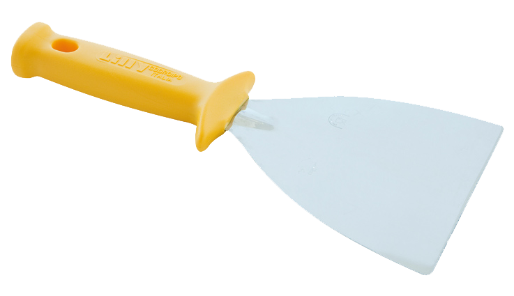 Teigspatel aus Edlestahl mit gelben Kunststoffgriff - eckig - Schaufelblatt 10 cm - kg 0,1