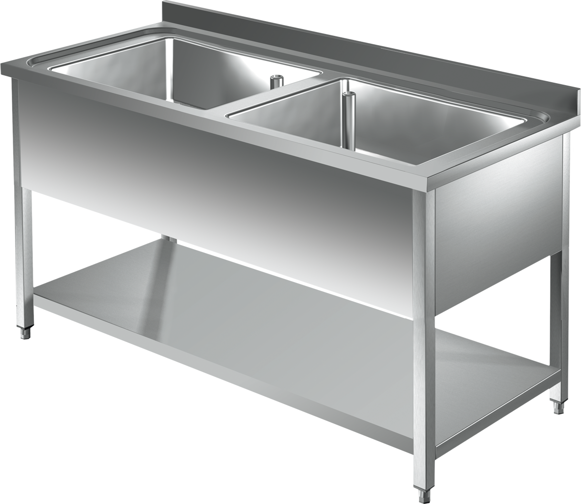 Ausführung: - Spültisch komplett aus Edelstahl - hohe Belastbarkeit durch verschraubte Konstruktion - keine scharfen Kanten - mit höhenverstellbaren Schraubfüßen Spülabdeckung: - 2 Spülbecken - Maße (BxTxH): 860 x 500 x 350 mm - Spülabdeckung mit 100 mm Aufkantung - Materialstärke: 0,8 mm - Inkl. Standrohrventil Untergestell: - Untergestell mit verstärktem Grundboden - 270 mm Front- & Seitenverkleidung unterhalb der Spülabdeckung - Lichtes Maß zwischen Grundboden und Front- bzw. Seitenverkleidung: 358 mm - Bodenfreiheit: ca. 140 mm - Grundgestell aus Vierkantprofil 40 x 40 mm, Profilstärke: 1,0 mm Material: - Chromstahl, nickelfrei, AISI 430, WNr. 1.4016, entspricht sämtlichen europäischen und amerikanischen Nahrungsmittel-Normen! Maße (BxTxH): 1000 x 600 x 850+100 mm