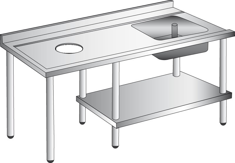 Zulauftisch (BxTxH): 180 x 77 x 85 cm - 1 Becken & Abfallloch - Anbringung: links der Maschine - kg 35