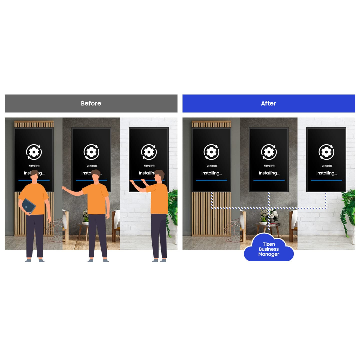 Das schlanke Design und die unauffällige Kabelführung lassen das QMB sich in nahezu jede Umgebung optisch ansprechend einfügen. Auch mehrere QMB-Displays können nach der einfachen Installation noch einheitlich mit Tizen Zero Configuration konfiguriert werden. Die Bildeinstellungen der Displays werden mit der Smart Calibration angeglichen.