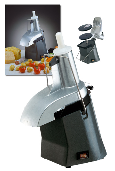 Multifunktionsgerät, das je nach Ausstattung als Gemüseschneider oder Käsereibe eingesetzt werden kann.