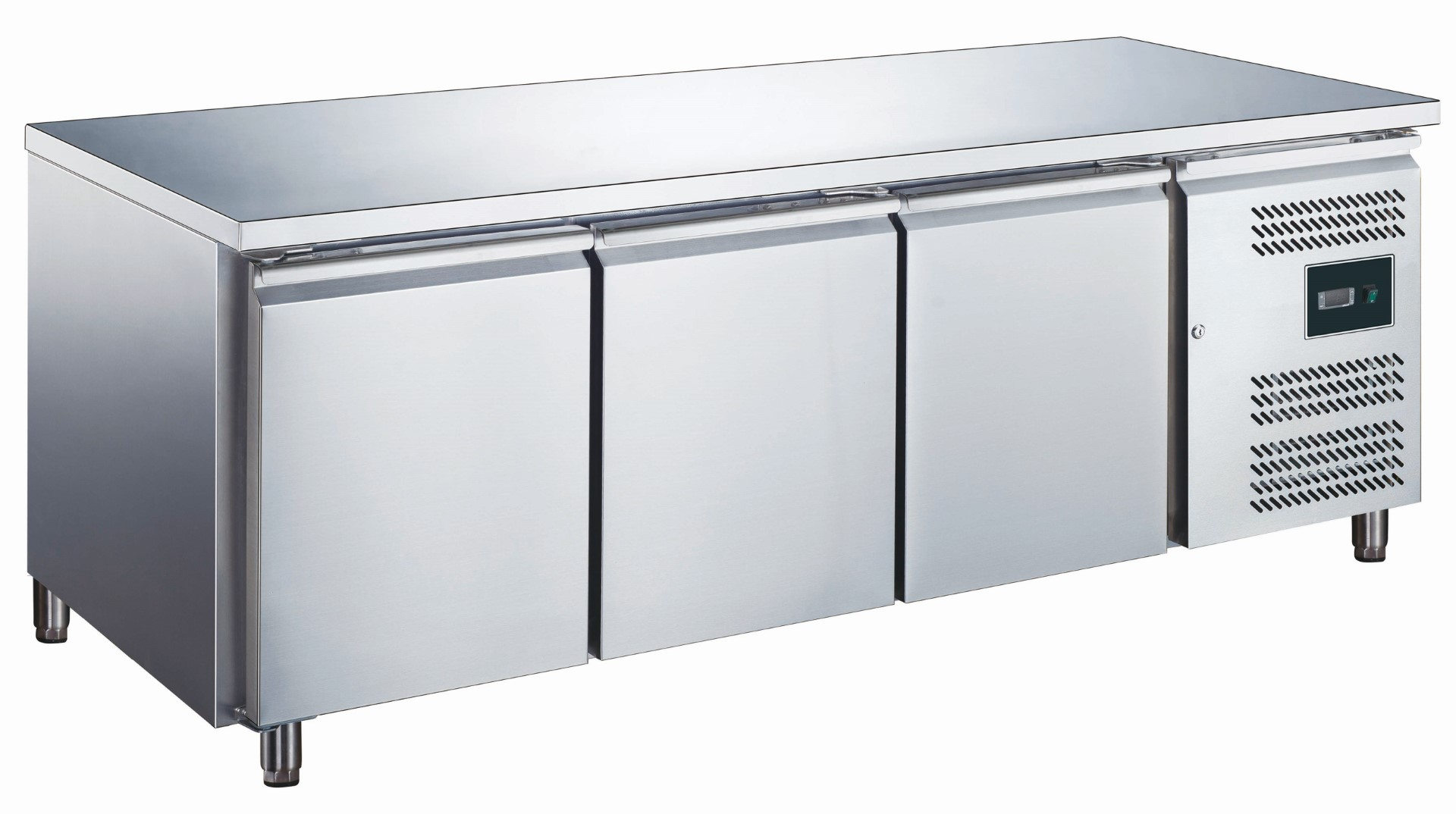 • Material: (Gehäuse und Innenraum) Edelstahl; (Arbeitsfläche) Edelstahl,• 3 Türen, selbstschließend,