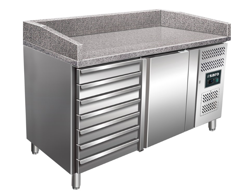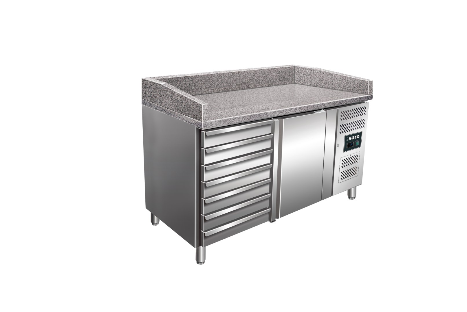 • Material: (Gehäuse und Innenraum) Edelstahl; (Arbeitsfläche mit Aufkantung) Granit,• 1 selbstschließende Tür + 7 Schubladen (ungekühlt),