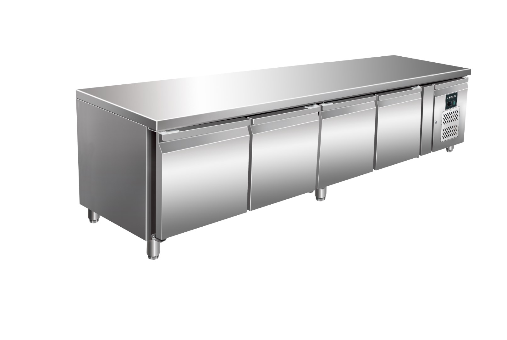 • Material: (Gehäuse und Innenraum) Edelstahl; (Arbeitsfläche) Edelstahl,• 4 Türen, selbstschließend,