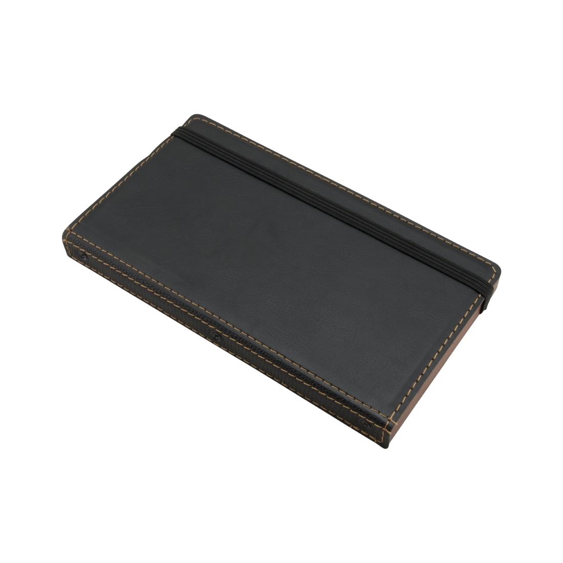 - Legen Sie den Geldschein, Geldscheine und eine Kredit-, Debit- oder Visitenkarte hinein und sichern Sie den Deckel mit dem Gummiband. Perfekt in Kombination mit den passenden Securit Trendy Menu Book Covers.