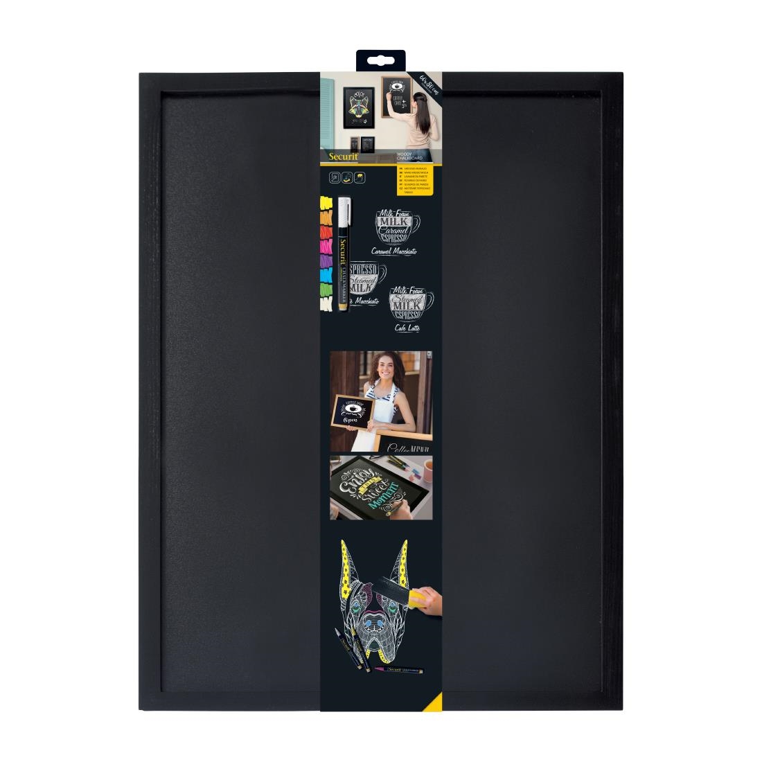 Securit Woody Kreidetafel 60x80, inklusive weißem Kreidemarker und Montageset