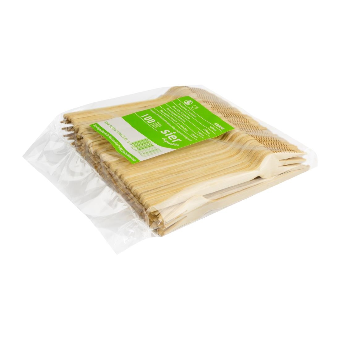 - Sier Einweg-Snackgabel Bambus 135 mm (100 Stück)