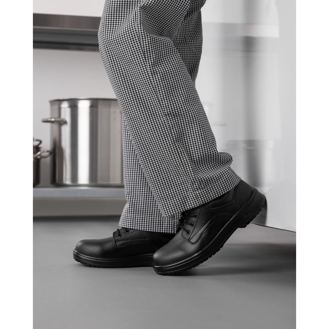 Schützen Sie sich vor gefährlichen Missgeschicken mit rutschfesten Schuhen. Ein Feuchtigkeit ableitendes Futter und eine perforierte, luftdurchlässige, gepolsterte Innensohle sorgen für Komfort während langer Arbeitszeiten.