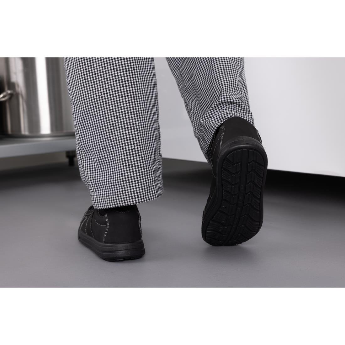 Diese rutschfesten, eleganten und bequemen Schuhe können problemlos den ganzen Tag getragen werden. Ein sportlicher Schuh mit rutschfester Außensohle, einem Zehenschutz aus Stahl und einer vorgeformten Innensohle samt gepolstertem Ferseneinsatz.