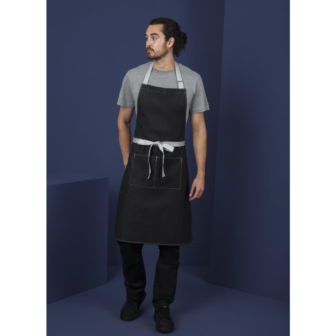 Putzen Sie Ihre Personaluniformen heraus mit dieser Latzschürze aus Polyester-Baumwolle mit kontrastierenden Bindegürteln. Mit verstellbarem Nackenband und doppelter Fronttasche. 100(L) x 70(B)cm.