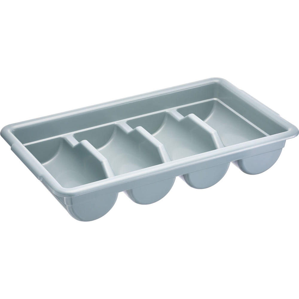 Unerlässliches Tool für die Bereithaltung und den Transport von Bestecken. In den vier tief gemuldeten Fächern mit mittig erhöhten Trennwänden lassen sich alle Hauptbestandteile eines Bestecksets getrennt unterbringen. Die seitlichen Griffmulden erleichtern Ihnen die Handhabung im Gastroalltag. Für die einfache Reinigung kann der Besteckkasten in die Spülmaschine!