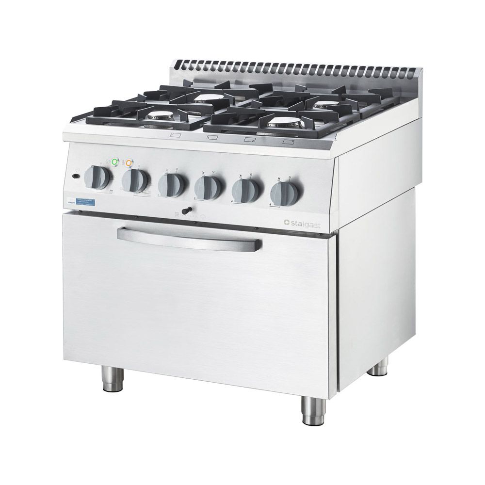 Stalgast Edelstahl Gasherd Basic mit 4 Brennern (2x3,5 +2x5) und Elektro-Umluft-Backofen GN 2/1, Serie 700 ND