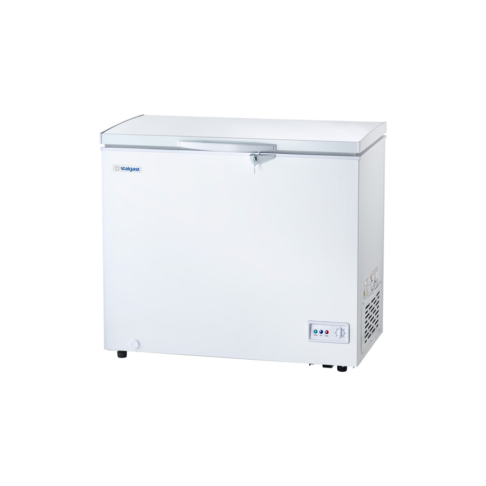 Diese Tiefkühltruhe für den professionellem Bedarf ist benutzerfreundlichen und verfügt über eine starke Isolierung, um unnötigen Energieverlust zu verhindern. Mittig der leicht schräggestellten Deckelfront ist der praktische, lange Griff sowie das Schloss auf guter Arbeitshöhe angebracht. Das geräumige Gefrierfach mit LED-Innenbeleuchtung bietet mit 190 Litern Nettorauminhalt viel Platz für Ihre Waren. In dem praktischen, verschiebbaren Einhängekorb können Sie kleines Gefriergut einsortieren, damit es schnell auffindbar und griffbereit ist. An der Vorderseite finden Sie den Thermostatregler sowie die Betriebsleuchten. Die Steuerung erfolgt elektronisch. Das Gerät steht sicher auf vier Rollen, um die Tiefkühltruhe bei Bedarf leicht umstellen zu können. Zur Reinigung können Sie die Tiefkühltruhe manuell abtauen, das Tauwasser kann dazu über den Abfluss komfortable abfließen. Anschließend lassen sich das pflegeleichte Gehäuse sowie der Innenraum unkompliziert ab-/auswischen. Wir empfehlen Ihnen, die Tiefkühltruhe von einem Fachmann installieren zu lassen!