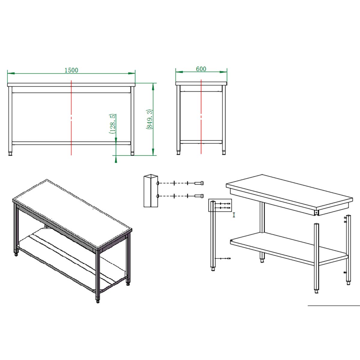 - Produktmaße (BxTxH): 1500x600x850 mm