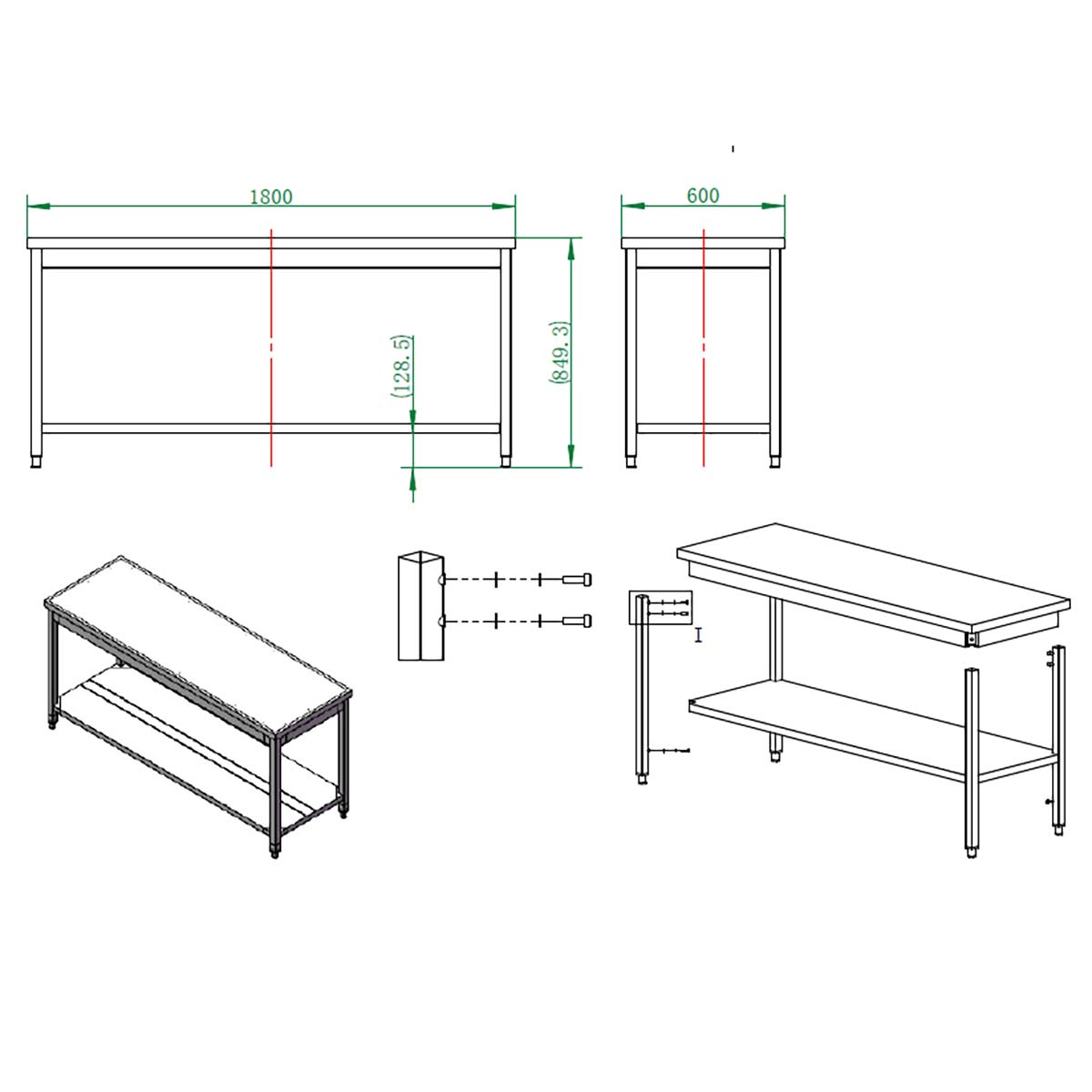 - Produktmaße (BxTxH): 1800x600x850 mm
