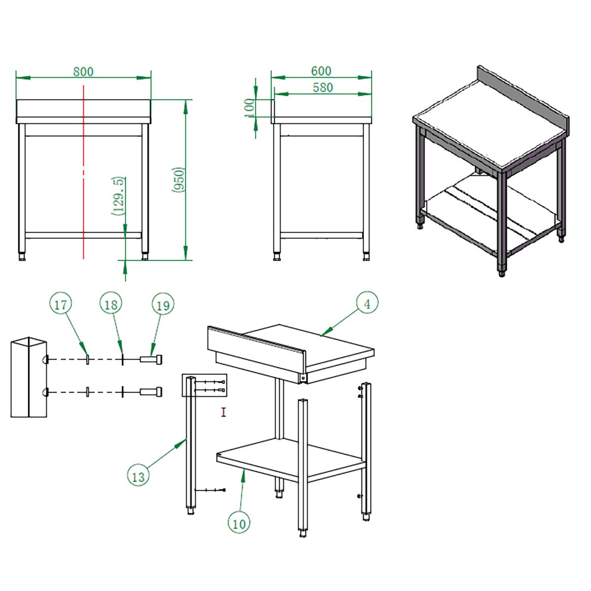 Vaiotec Easyline Arbeitstisch 600 / mit Grundboden & Aufkantung B:800