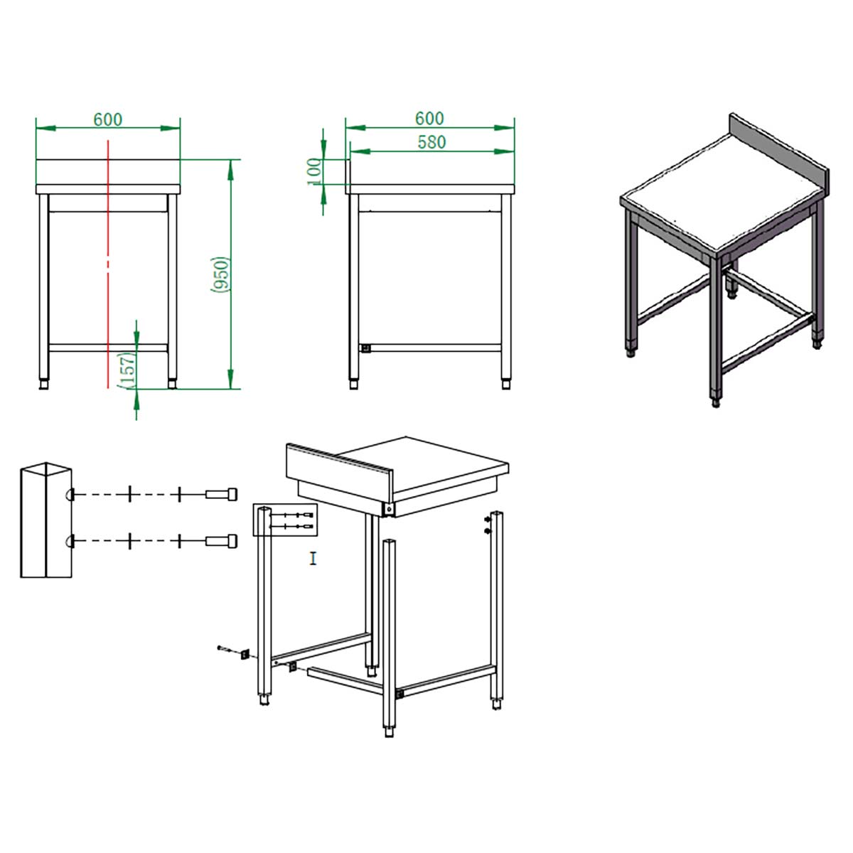 Vaiotec Easyline Arbeitstisch 600 / unterfahrbar mit Aufkantung B:600