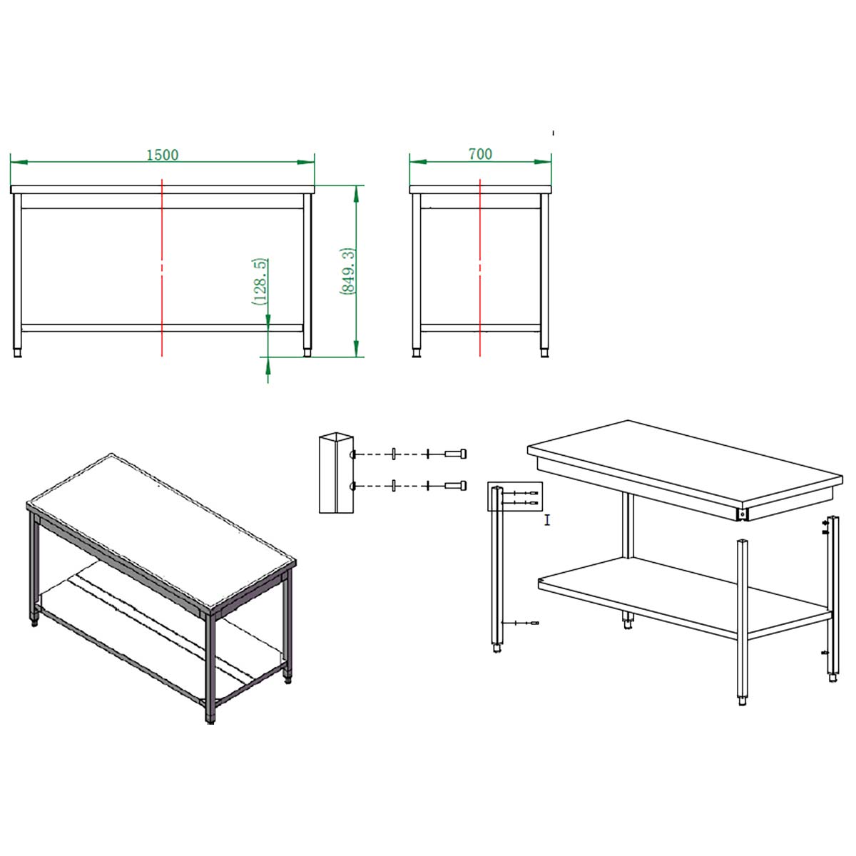 - Produktmaße (BxTxH): 1500x700x850 mm