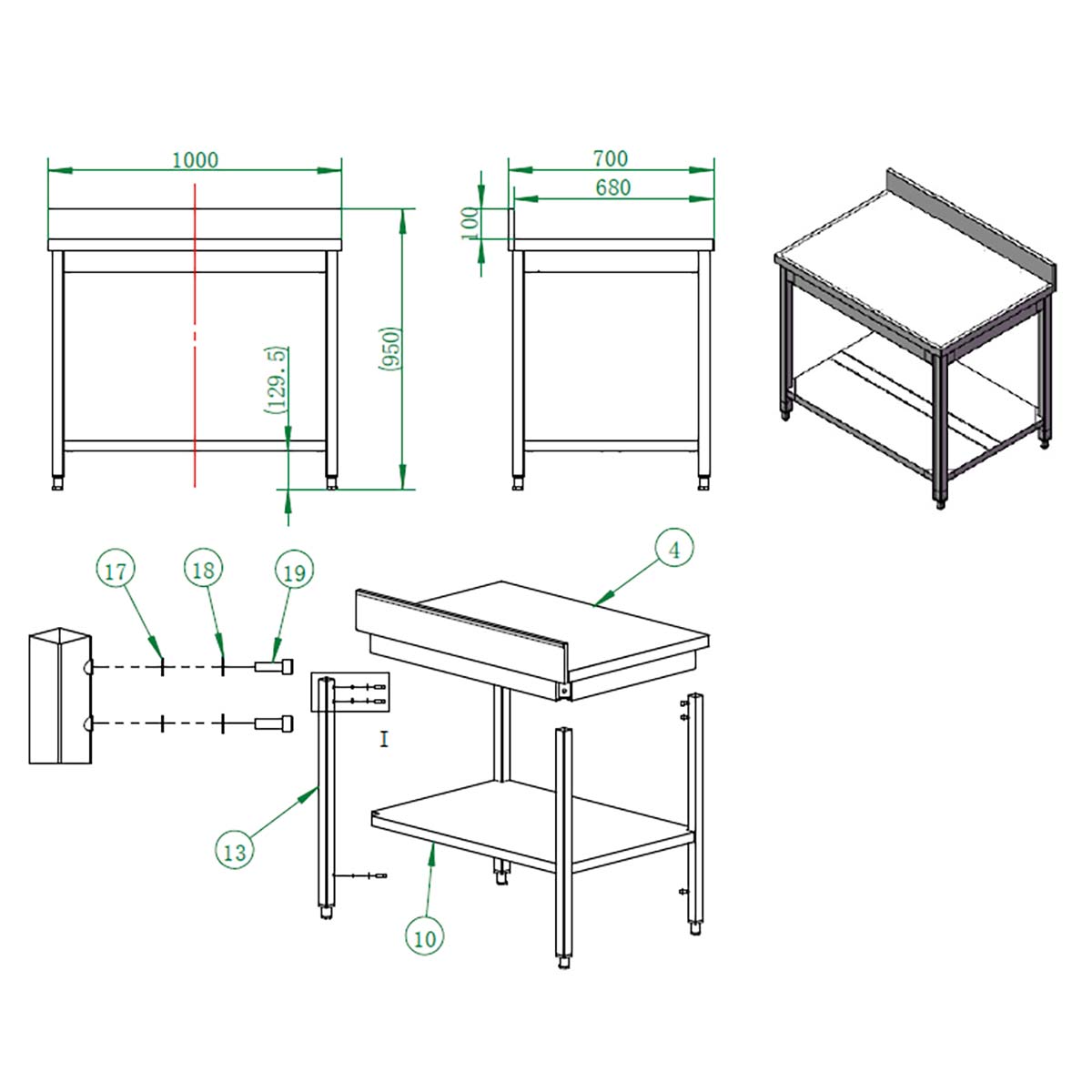 Vaiotec Easyline Arbeitstisch 700 / mit Grundboden & Aufkantung B:1000