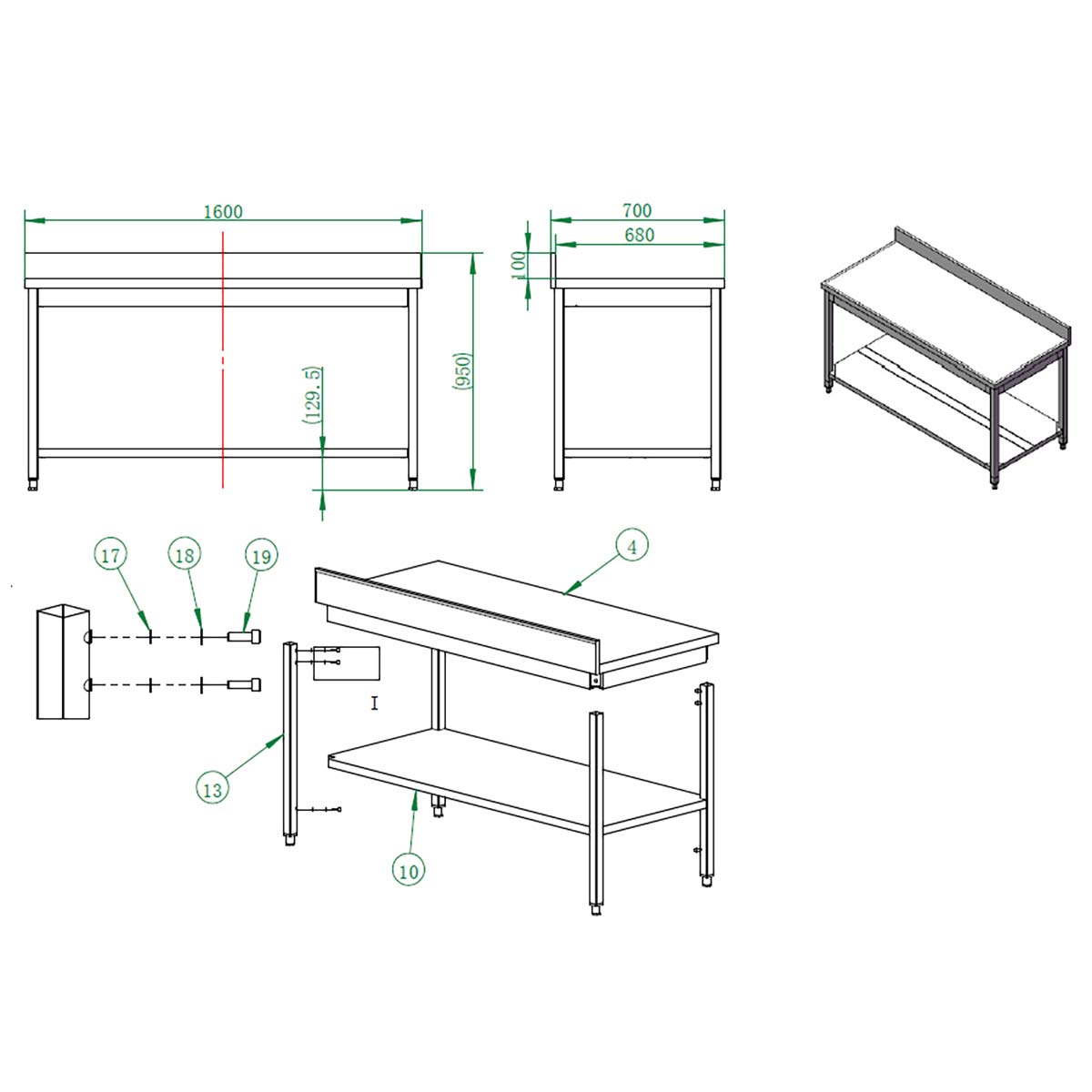 Vaiotec Easyline Arbeitstisch 700 / mit Grundboden & Aufkantung B:1600
