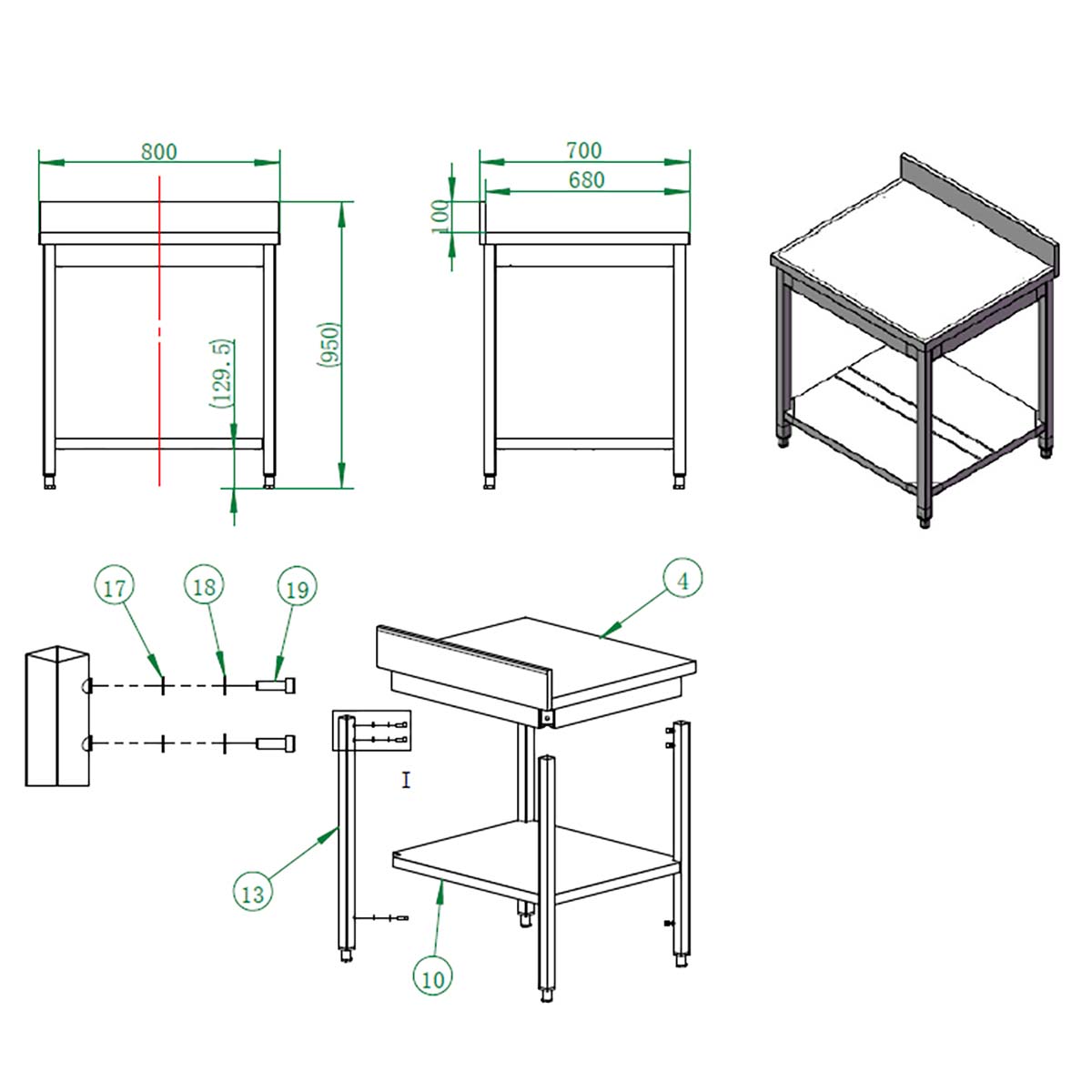 Vaiotec Easyline Arbeitstisch 700 / mit Grundboden & Aufkantung B:800