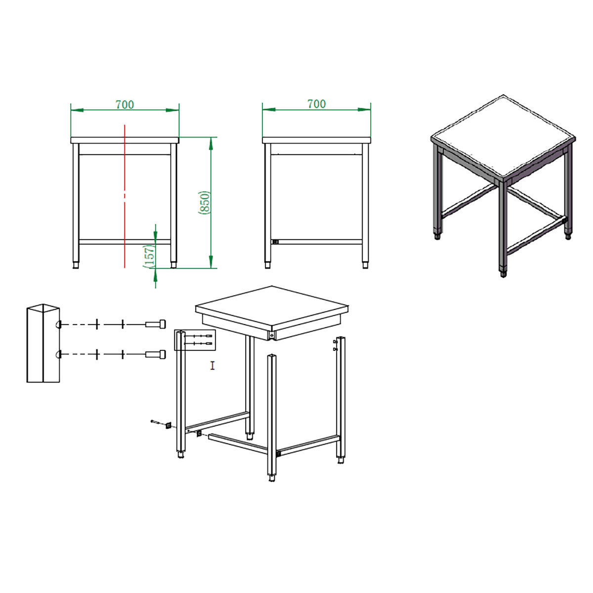 Vaiotec Easyline Arbeitstisch 700 / unterfahrbar B:700