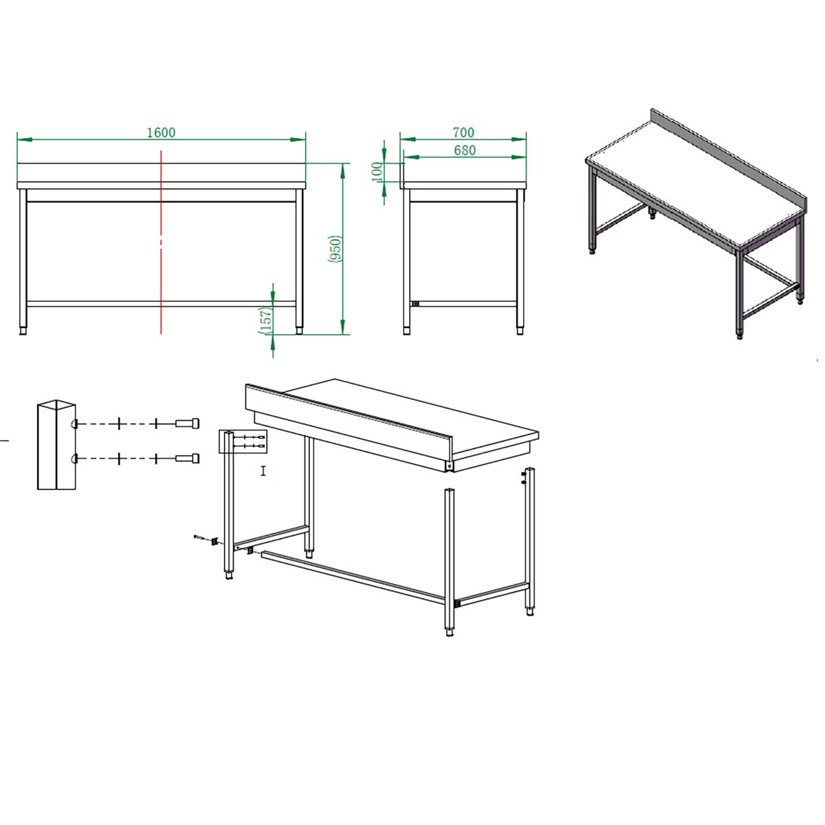 - Produktmaße (BxTxH): 1600x700x850 mm