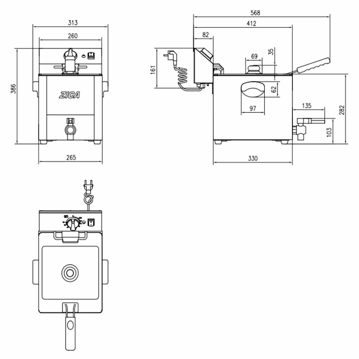 Vaiotec Easyline Elektro Fritteuse 1 Becken mit Ablasshahn 10 Liter