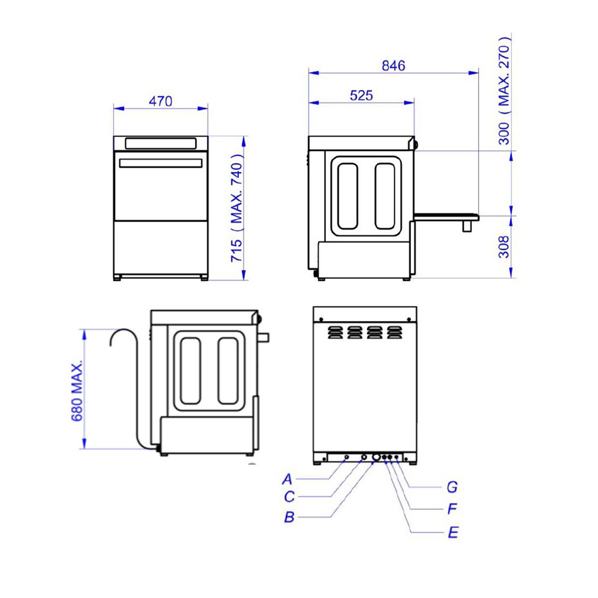 Vaiotec Easyline Gläserspülmaschine 40x40 / 230 Volt - Modell: VT-E GW40 DRD