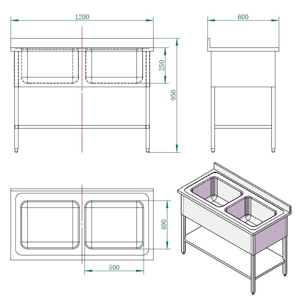 Vaiotec Easyline Spültisch 600 / 2 Becken B:1200