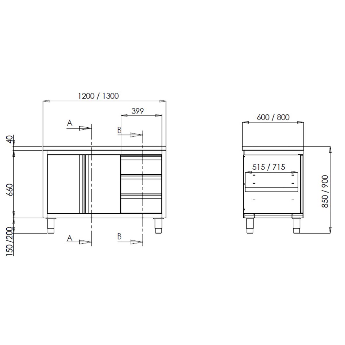Vaiotec Topline Arbeitsschrank 600 / 2 Schiebetüren & 3 Schubladen B:1800