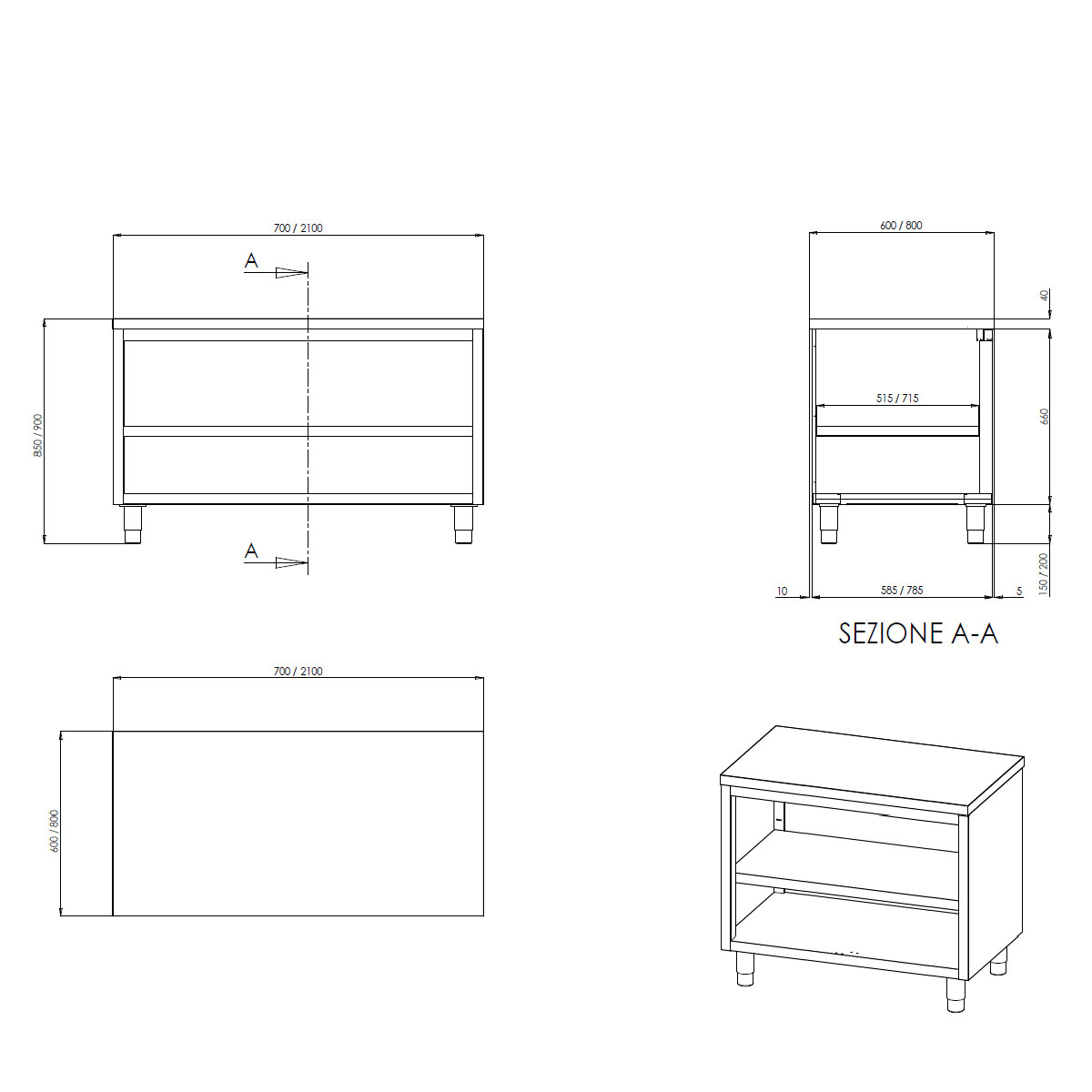 Vaiotec Topline Arbeitsschrank 600 / offen B:800