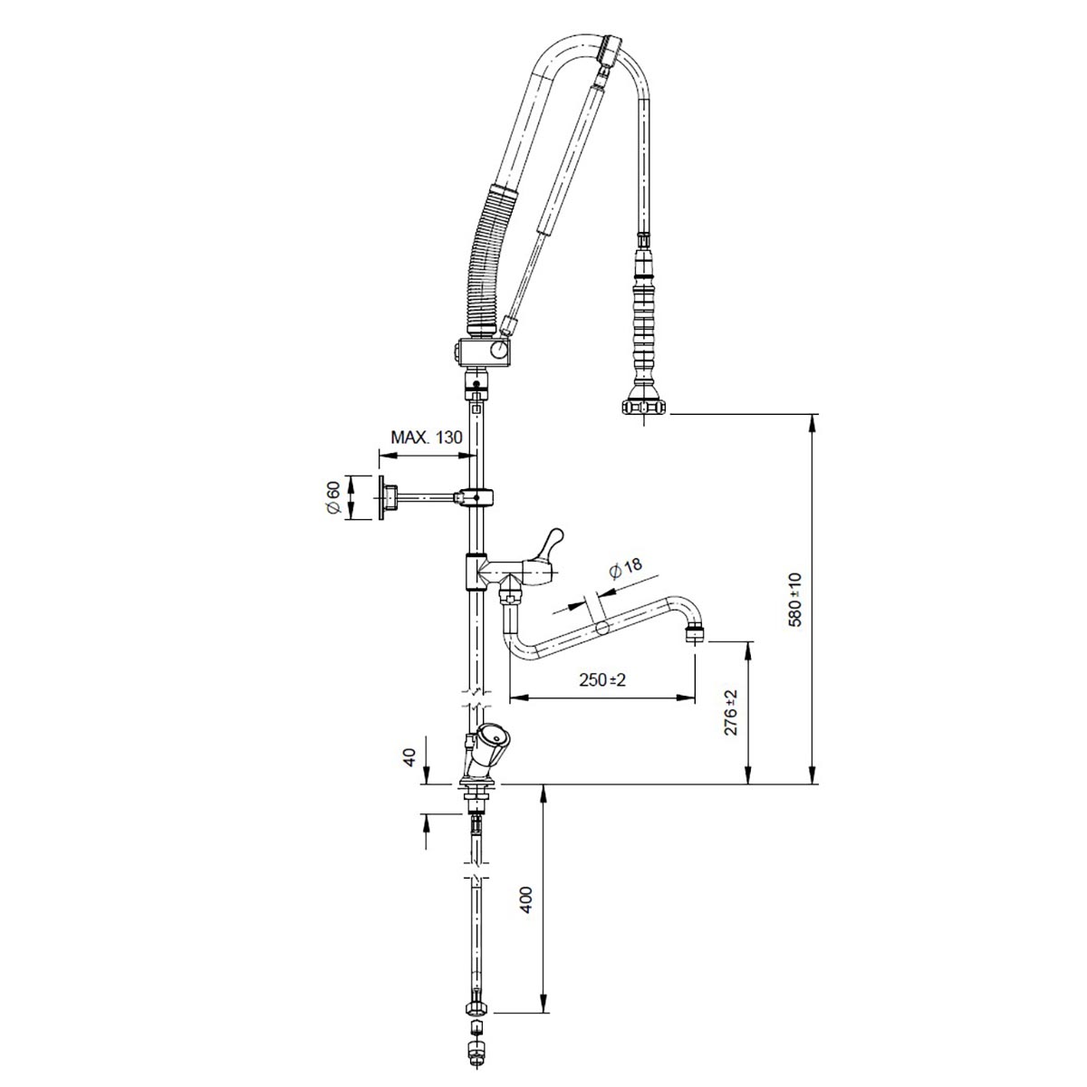 - Höhe der Geschirrwaschbrause: ca. 1250 mm