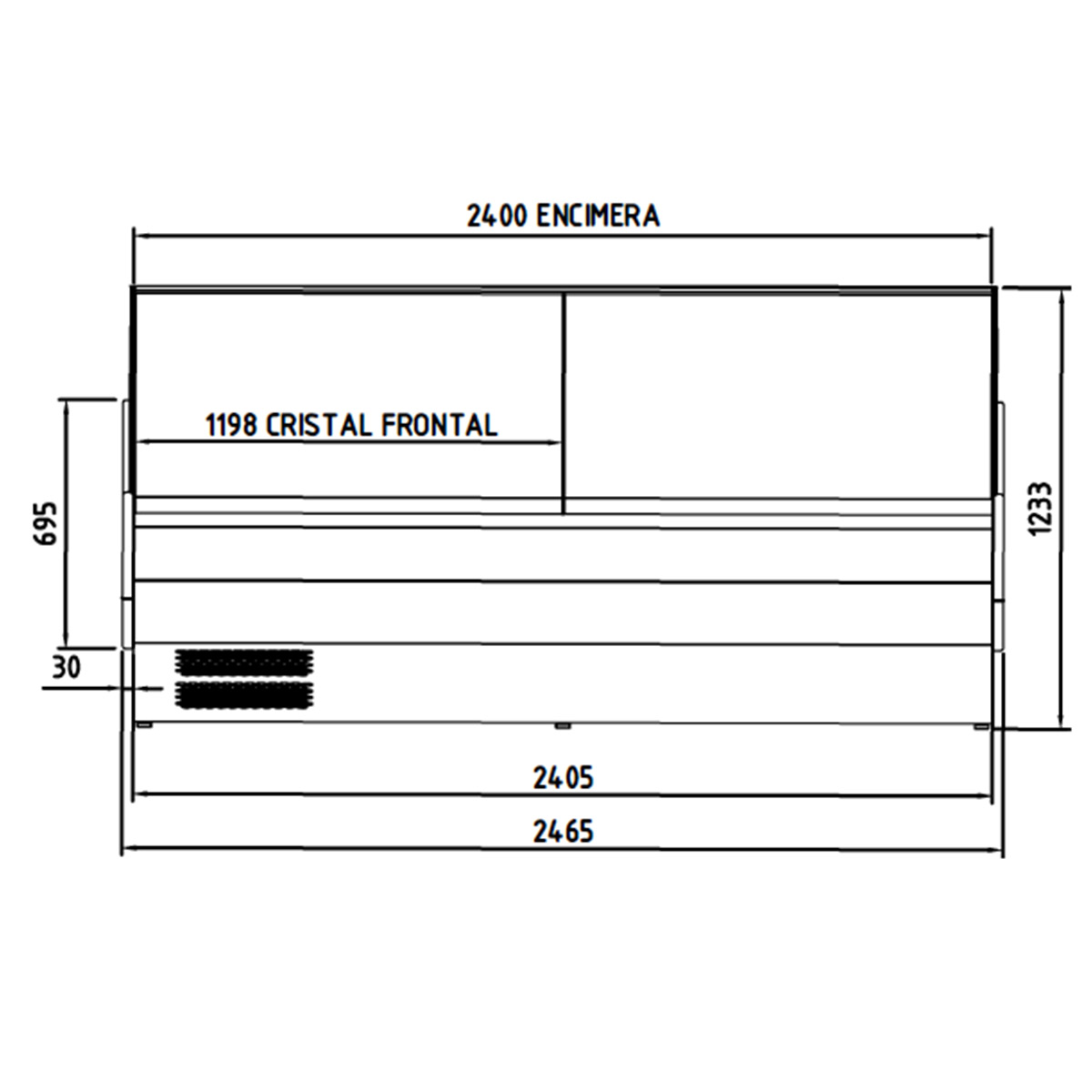 - BxTxH: 2465x800x1235 mm