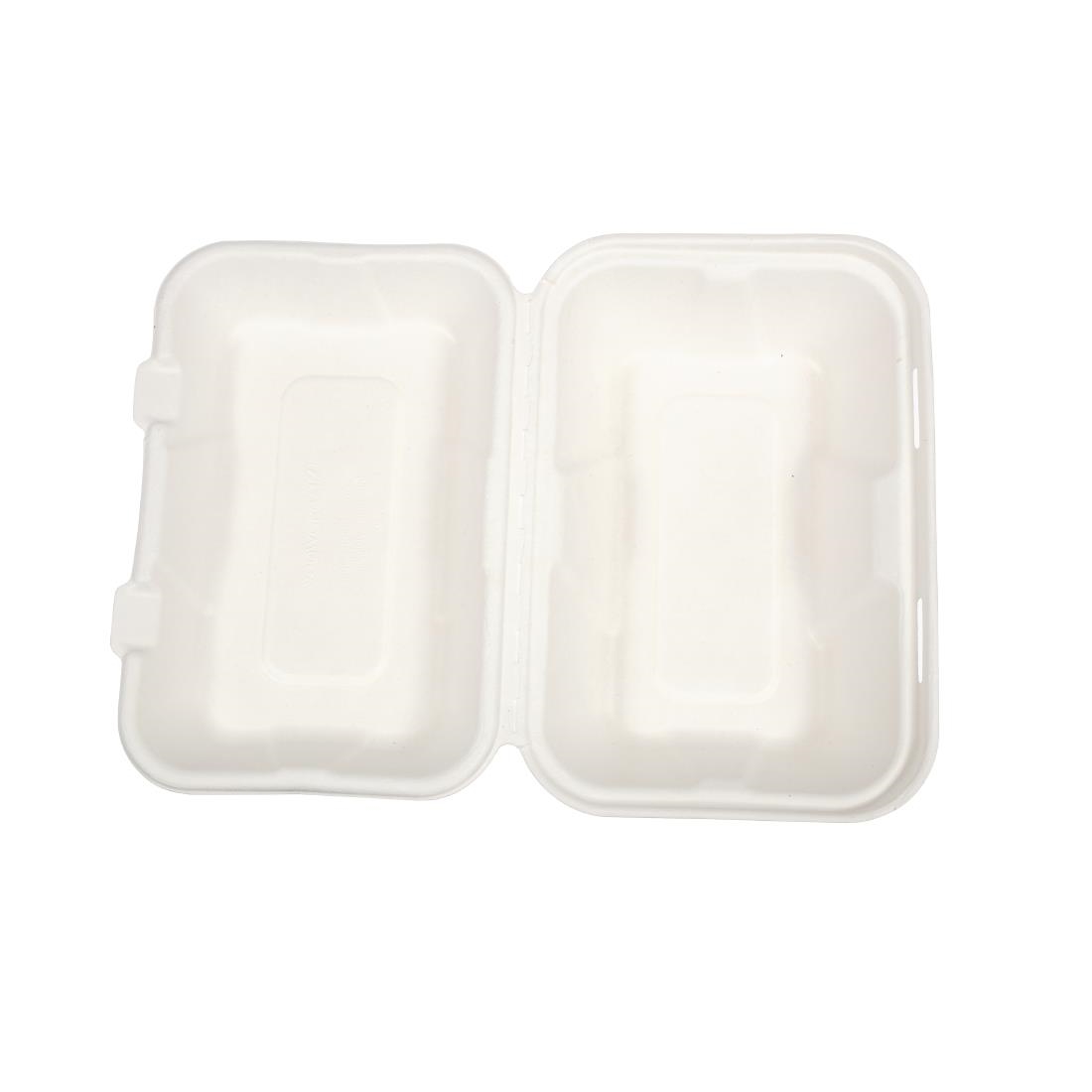 Vollständig kompostierbare Menüboxen mit Klappdeckel aus Bagasse. Ideal, um Speisen heiß zu halten. Mikrowellen- und gefrierergeeignet. Stabil und stapelbar.