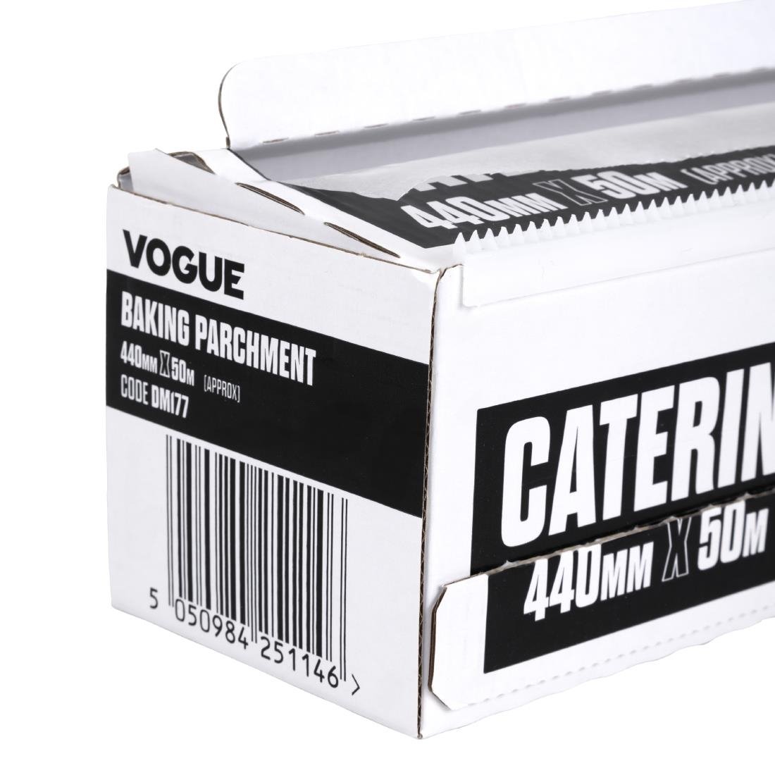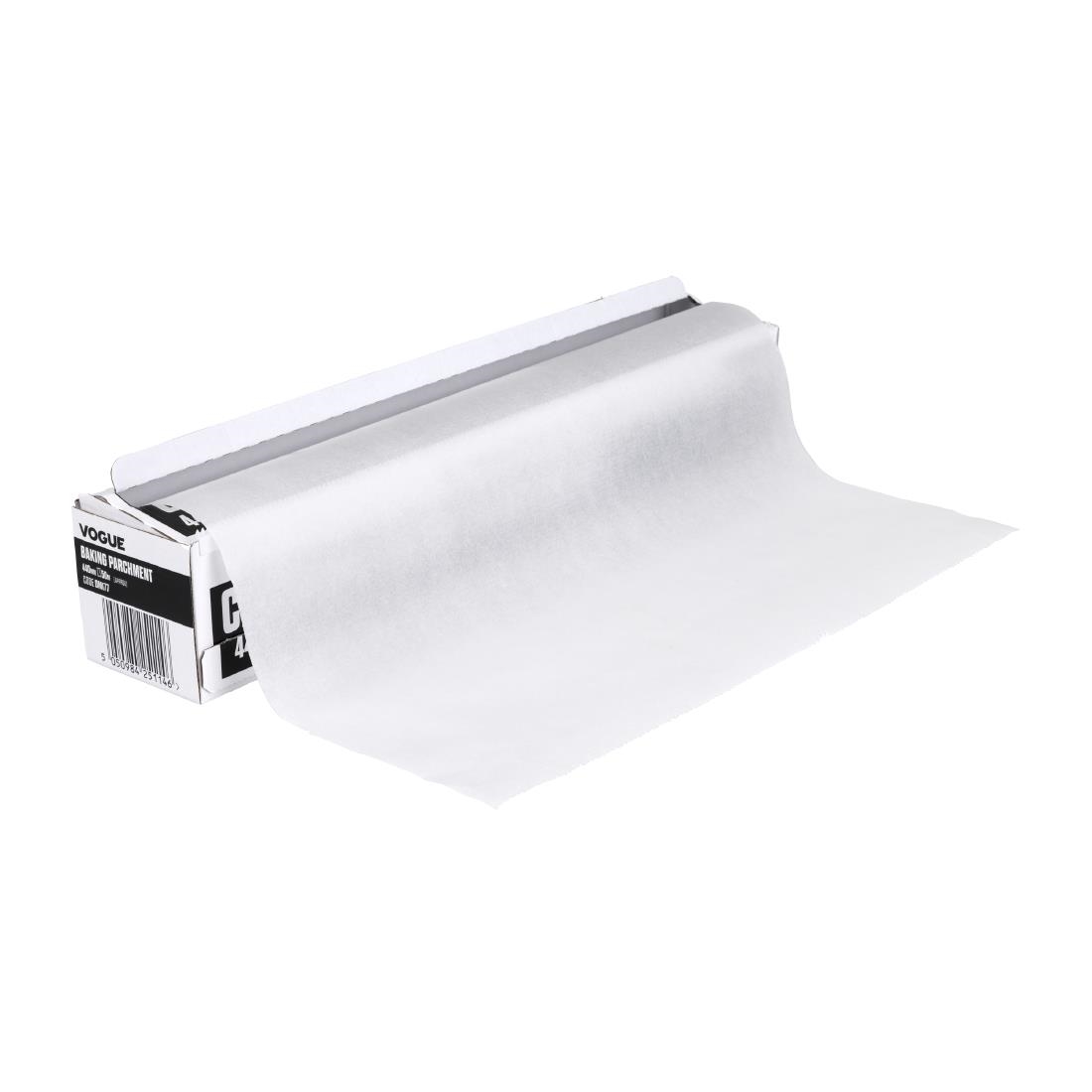 Stabiler Kartonspender mit Abreißkante. In 34cm oder 45cm Breite erhältlich. Rolllänge 50m. Beidseitig antihaftbeschichtet und geeignet bis 230°C.