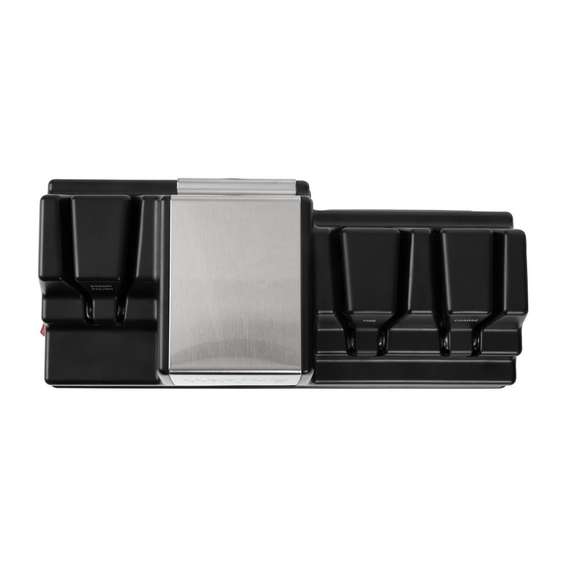 - Schleift in Winkeln von 18-22° (von Messerherstellern empfohlene optimale Winkel)